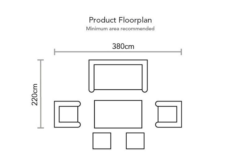 Supremo recommended floor space for this set is 220x380cm - see image