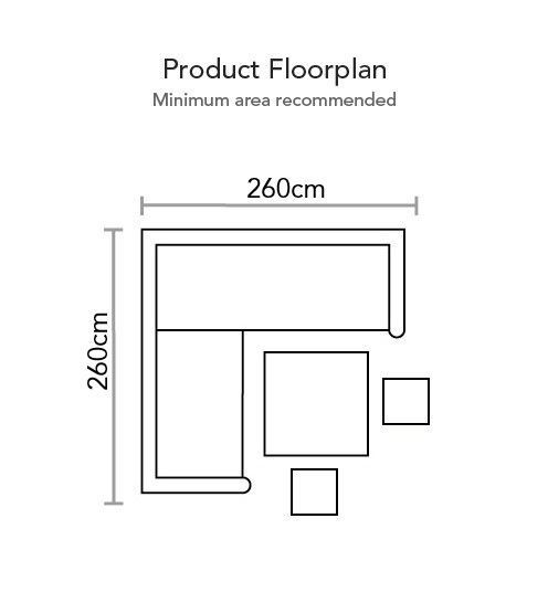 Supremo recommended floor space for this set is 260x260cmcm - see image