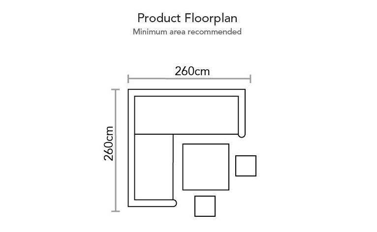 Supremo recommended floor space for this set is 260x260cmcm - see image