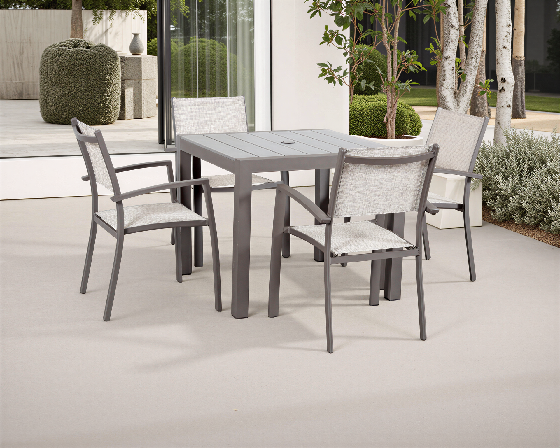 arrangement to your needs. Made with premium textilene sling material, these chairs provide comfort and support with a contemporary edge, perfect for long dining sessions or quick gatherings.