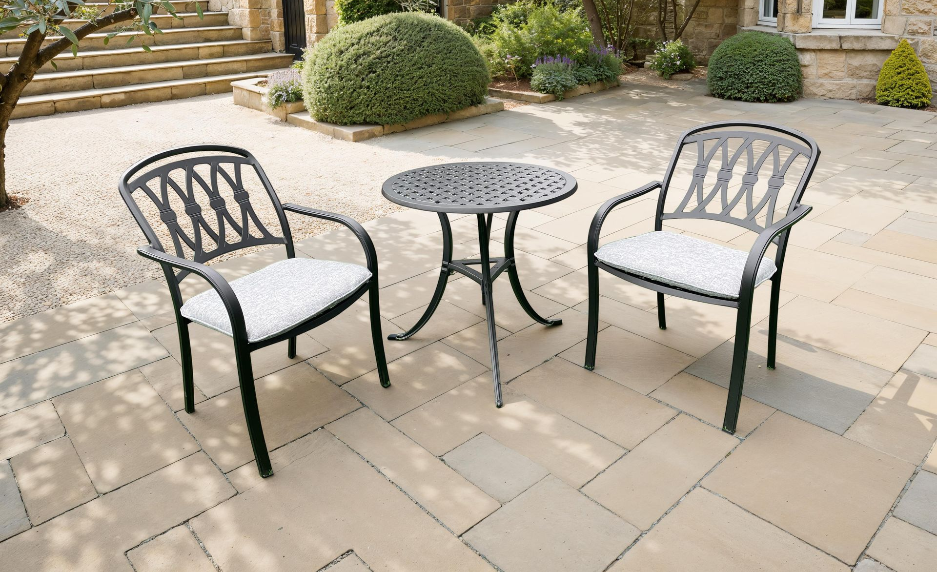 Reimagine your outdoor space with the Nerano cast aluminium range, where contemporary elegance meets innovative design. This striking collection stands out with its unique backrest design, featuring intricate patterns that not only provide visual